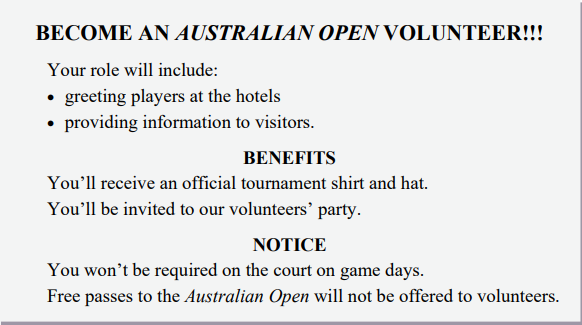 BECOME AN AUSTRALIAN OPEN VOLUNTEER!!!